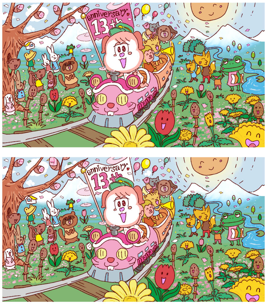2026.2.25 モナミールとあそぼ!まちがいさがし(2026年03月号) 上と下で違うところは全部で10ヶ所! ぜんぶわかったかな?? 3月号のもんだい 答えを見るには下のボタンを押してね! ▼答えを見る まちがいさがし一覧 まちがいさがし一覧はこちらから